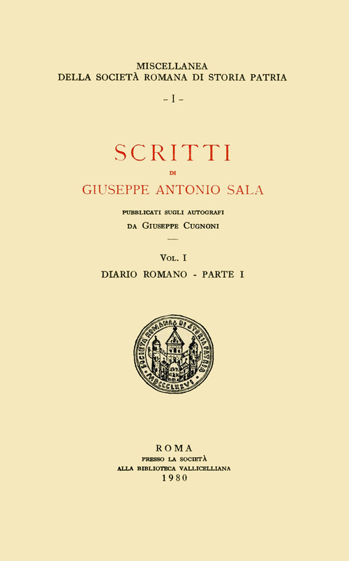 Il primo volume apre con lo scritto di Giuseppe Cugnoni dal titolo Memorie della Vita e degli scritti del Cardinale Giuseppe Antonio Sala; il Sala fu un cardinale romano vissuto tra la fine del Settecento e l'inizio dell'Ottocento. Prosegue il volume con il Diario Romano degli anni 1798-99 di G. A., coprendo l'arco di tempo che va dal 1° gennaio al 30 giugno 1798. All'antiporta del primo volume è presente il ritratto del cardinal Sala inciso da Giovan Battista Molinari. Il secondo volume prosegue il diario dal 1° luglio al 31 dicembre del 1798. La terza parte del diario copre infine l'intero anno 1799 concludendosi nel mese di dicembre ed è racchiusa per intero nel volume tre della Miscellanea. Il quarto e ultimo volume è composto da una raccolta di scritti vari del Sala. Presente nel volume anche il Piano di riforma umiliato a Pio VII, che costituisce lo scritto più corposo dell'intera raccolta, e in chiusura una Vita scritta dal Sala sull'opera di suo fratello, l'abate Domenico Sala, di cui diverrà erede fiduciario. Tutti gli scritti presenti nella Miscellanea sono pubblicati sugli autografi da Giuseppe Cugnoni.