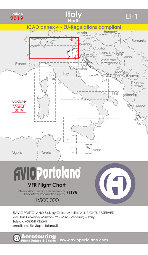 Avioportolano. VFR flight chart LI 1 Italy north. ICAO annex 4 - EU-Regulations compliant. Ediz. italiana e inglese
