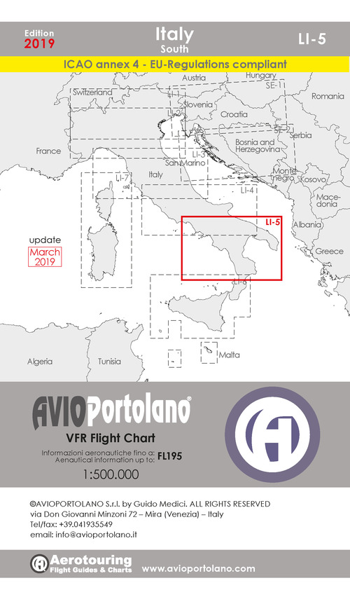 Avioportolano. VFR flight chart LI 5 Italy south. ICAO annex 4 - EU-Regulations compliant. Ediz. italiana e inglese