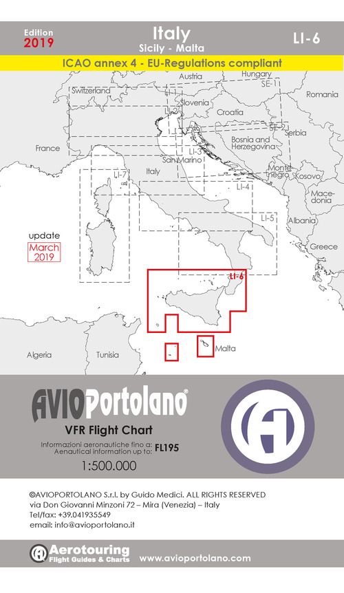Avioportolano. VFR flight chart LI 6 Italy Sicily. ICAO annex 4 - EU-Regulations compliant. Ediz. italiana e inglese