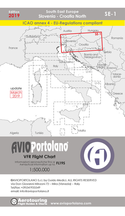 Avioportolano. VFR flight chart SE 1. South East Europe. Slovenia, Croatia north. ICAO annex 4 - EU-Regulations compliant. Ediz. italiana e inglese