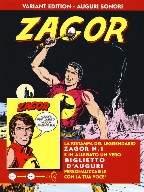 La ristampa del leggendario Zagor n. 1 e in allegato un vero biglietto d'auguri personalizzabile con la tua voce.