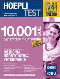 10001 quiz, interamente risolti, per esercitarti nelle materie d'esame e per verificare il tuo livello di preparazione reale. Il volume, aggiornato sulla base delle domande realmente assegnate nel corso degli ultimi anni, ti consentirà di acquisire rapidamente quella familiarità necessaria allo svolgimento dei test ufficiali. I 10001 quiz per la preparazione ai test di accesso a Medicina, Odontoiatria e Veterinaria, completi delle relative soluzioni e interamente commentati online, ti offriranno la possibilità di verificare la tua performance, mettendoti nelle migliori condizioni di superare il test ed entrare subito nel mondo dell'Università. Online su www.hoeplitest.it è possibile trovare: soluzioni e commenti di tutti i quiz; aggiornamenti e integrazioni agli argomenti trattati; simulatore con prove d'esame per verificare la tua preparazione; quiz assegnati nel corso degli ultimi anni; ultime notizie su leggi e normative per le diverse sedi.