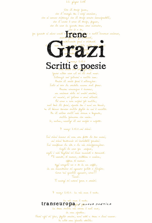 "Scritti e poesie" di Irene Grazi è una raccolta di testi in prosa e in versi scaturiti spesso da momenti di quotidianità che si allargano alla riflessione o all'intuizione del mistero dell'esistenza. I temi sono quelli del tempo che scorre, dei ricordi, del senso della vita, della solitudine dell'anima, della ricerca di sé, dell'assenza di risposte, della vanità dell'amore. Emerge talvolta un senso di speranza e di attesa.