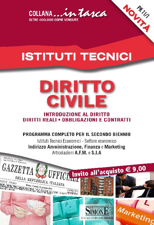 Questo volume, seguendo i programmi scolastici vigenti, consente un'immediata comprensione degli aspetti più significativi del Diritto Civile, disciplina prevista nel secondo biennio degli Istituti tecnici. Nel corso dei capitoli sono presenti box e note esplicative che approfondiscono determinati aspetti degli argomenti trattati, laddove ce ne sia bisogno. Il volume, seppure in formato ridotto, tratta in forma manualistica l'intero programma di studi e pertanto può sostituire il testo adottato per la parte istituzionale. Esso si differenzia dai manuali adozionali solo perché privo degli apparati didattici, delle mappe concettuali e delle prove di verifica e pertanto costituisce un valido ausilio per quanti vogliano affrontare compiutamente lo studio del programma di Diritto Civile.