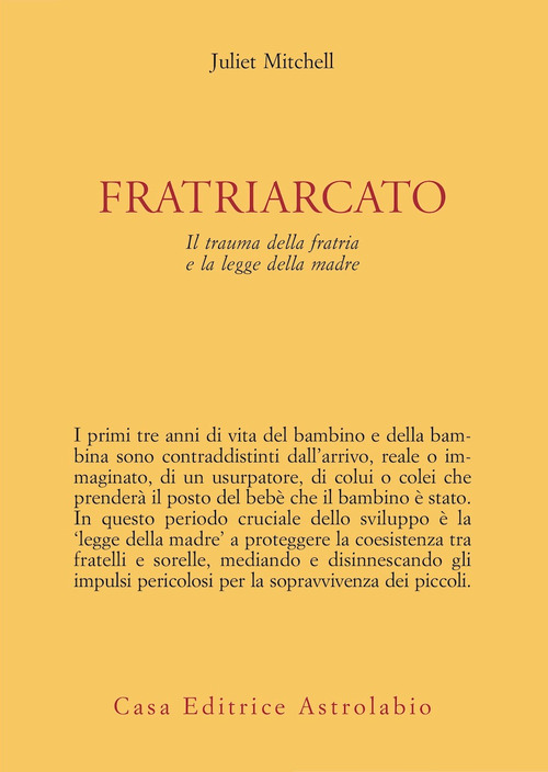 Fratelli e sorelle interagiscono su un asse orizzontale, che si interseca, come su un piano cartesiano, con quello verticale, costituito dal mondo degli adulti. Se nell'universo socializzato dei bambini e delle bambine più grandi la lacaniana 'legge del padre' proibisce l'incesto e l'omicidio lungo l'asse verticale, nel mondo presociale del bambino piccolo è quella che Mitchell definisce 'legge della madre' a impedire che omicidio e incesto avvengano tra fratelli e sorelle. L'autrice affronta in questo volume un'analisi psicoanalitica delle relazioni nella fratria, rintracciando la presenza, o la significativa assenza, di fratelli e sorelle nel lavoro di tre grandi autori: Donald Winnicott, Wilfred Bion e Jean-Bertrand Pontalis. Ogni bambino piccolo vive, indipendentemente dall'arrivo reale di un fratellino o di una sorellina, un 'trauma della fratria' (altro punto cardine della concezione di Mitchell), un momento in cui la propria identità di bebè della famiglia è messa in discussione. Non è più quello che era ma non è ancora quello che diventerà; l'ingresso nel mondo sociale attenua, almeno in apparenza, questo trauma, che tuttavia è rimasto troppo a lungo inesplorato e secondo l'autrice si ripropone con forza nell''omicidio legalizzato' rappresentato dalla guerra e nell''incesto legalizzato' rappresentato dal matrimonio. In chiusura del volume viene affrontato un altro punto nodale della teoria della psicoanalista britannica, il concetto di 'genere', da utilizzare esclusivamente sull'asse orizzontale, poiché basato sulla bisessualità psichica, cioè sulla presenza psichica dell'altro sesso in ciascuno di noi.