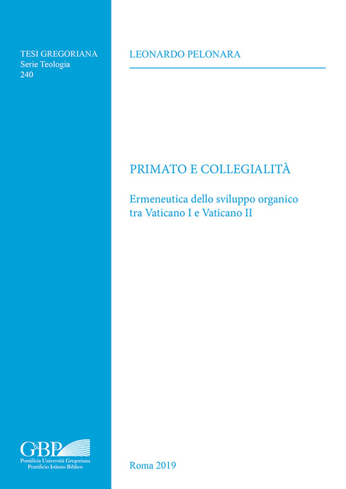 Riferendosi al Concilio Vaticano II, Benedetto XVI aveva distinto due approcci ermeneutici, proponendo l'"ermeneutica della riforma nella continuità dell'unico soggetto-Chiesa" come la via per una corretta comprensione dei suoi documenti. Accogliendo tale indicazione, il presente lavoro affronta il rapporto tra il dogma del primato pontificio definito dal Vaticano I e la dottrina della collegialità episcopale dichiarata dal Vaticano II. Esso viene studiato a partire delle discussioni conciliari ma anche attraverso l'analisi del Magistero e della teologia tra i due Concili, offrendo inoltre uno studio a campione dei manuali di ecclesiologia elaborati dai docenti del Collegio Romano. L'opera si propone dunque nella duplice veste di un saggio di ermeneutica della riforma e di una sua verifica nell'ambito di una tematica teologica circoscritta.