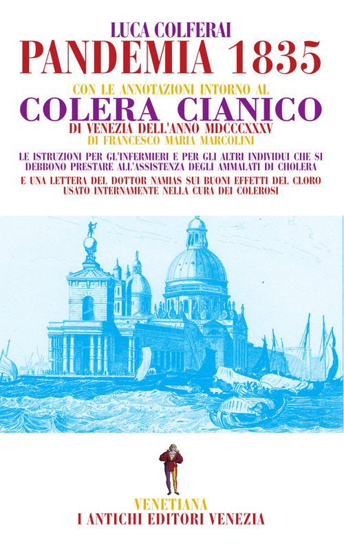 Nell'autunno del 1835 Venezia veniva colpita da un'epidemia di colera, che subito si trasformerà in pandemia. Una breve antologia di testi originali scritti in prima persona da medici del tempo a ridosso della prima ondata del morbo. Il colera nell'Ottocento è una malattia insidiosa, mortale, orribile, di cui l'arte medica stenta a conoscere le cause, i modi, gli effetti. Sviluppatasi in India, colpirà una prima volta l'Asia fermandosi sulle coste del Mar Caspio nel 1823. Ma tre anni dopo, nel 1826, ripartirà per colpire anche l'Europa e l'America. La lotta alle pandemie ottocentesche di colera avrà influssi profondi sulla cultura occidentale: sviluppi nelle conoscenze mediche e scientifiche; miglioramenti delle condizioni igieniche sociali e personali; trasformazioni radicali nell'assistenza e nel controllo delle malattie. In parte sono dovuti anche al lavoro degli autori dei piccoli saggi raccolti in questa antologia. Un indispensabile raffronto tra passato e presente. Con le «Annotazioni sul cholera cianico» di Francesco Maria Marcolini, una «Lettera sugli effetti del cloro» di Giacinto Namias, e «Le istruzioni per gl'infermieri» di anonimo.