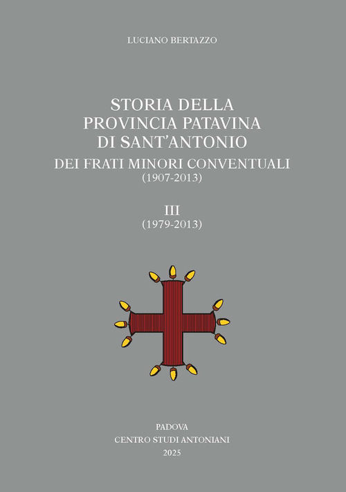 Sommario in lingua italiana Terzo volume di tre della Storia della Provincia Patavina di Sant'Antonio dei Frati Minori Conventuali copre la storia dal 1979 al 2013. Il presente volume, a firma di Luciano Bertazzo, conclude l'opera che copre l'intero arco temporale della storia dell'Istituzione francescana che dal 2013, riorganizzandosi, ha assunto il nome di "Provincia Italiana di Sant'Antonio dei Frati Minori Conventuali". Il primo volume, sempre a firma di Luciano Bertazzo, raccoglie la storia dal 1907 al 1952 (edizione 2025); il secondo realizzato da Antonino Poppi dal 1952 al 1972 (edito nel 2008). Sommario in lingua inglese This is the third of three volumes of the History of the Province of Padua of Saint Anthony of the Friars Minor Conventual, covering the period from 1979 to 2013. This volume, written by Luciano Bertazzo, concludes the work, which covers the entire history of the Franciscan institution, which, following its reorganization in 2013, took the name "Italian Province of Saint Anthony of the Friars Minor Conventual." The first volume, also written by Luciano Bertazzo, covers the history from 1907 to 1952 (2025 edition); the second, written by Antonino Poppi, covers the history from 1952 to 1972 (published in 2008).