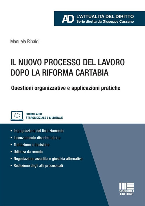Nel presente volume vengono affrontate, con un'esposizione chiara e semplice, le tematiche del diritto del lavoro, sostanziale e procedurale, sorte con le prime applicazioni pratiche delle novità introdotte dalla Riforma Cartabia (d.lgs. n. 149/2022).Tra le tematiche che avranno un maggiore impatto "immediato" nelle controversie di lavoro, vi è l'introduzione della negoziazione assistita, che non si pone, però, come condizione di procedibilità della domanda giudiziale, bensì quale mera facoltà attribuita alle parti, nonché la definitiva (attesa?) abrogazione del c.d. rito Fornero in materia di impugnativa giudiziaria dei provvedimenti di licenziamento. Il testo ripercorre tutte le novità più recenti, tra cui la sentenza della Corte costituzionale 7/2024, che si è pronunciata sulla disciplina dei licenziamenti collettivi prevista dal Jobs Act, ed affronta criticità e prospettive a distanza di circa un anno dalla Riforma, avvalendosi dell'ausilio di tabelle riepilogative per una migliore e più facile comprensione degli argomenti trattati e della più recente giurisprudenza. Completa il volume un pratico Formulario online stragiudiziale e giudiziale, disponibile anche in formato editabile e stampabile.