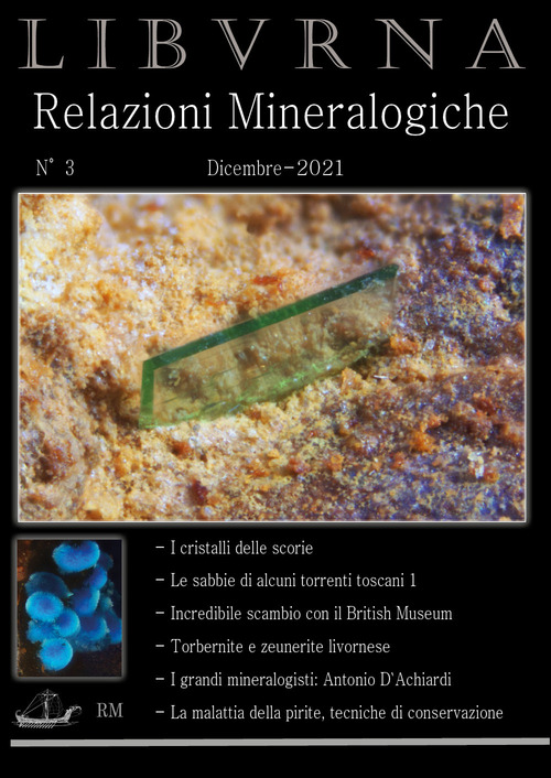 In questo numero si discute di minerali antropogenici, di grandi mineralogisti e si inizia anche un tema molto vasto che è quello della pulizia e conservazione dei minerali. Prosegue la collaborazione con il gruppo AMF & Friends, inizia anche quella con il Museo Geopaleontologico G.A.M.P.S. a Badia Settimo, Scandicci di Firenze e con il gruppo TOSCANA: Minerali, miniere, geologia e storie di miniera e di cercasassi... . Ad oggi possiamo immaginare in futuro una collaborazione con altri musei ed altri gruppi di appassionati delle varie provincie toscane e/o che sono presenti anche su Face Book. Il supporto cartaceo c'è, e LIBVRNA è aperta a tutti. Vi ringraziamo per il contributo e per la fiducia che ci avete finora accordato. Si ricorda che il limite geografico dei minerali toscani, è esteso anche alle località confinanti con la Toscana. Quindi o voi abitanti vicini alla Toscana, proponete che noi vi aspettiamo con entusiasmo.