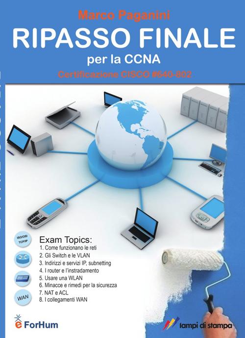Ti senti pronto, dopo aver studiato a fondo e fatto tanti laboratori, per sostenere con successo l'esame di Certificazione Cisco CCNA #640-802? Il programma e i contenuti della certificazione ti sono familiari? Forse ti manca solo un Ripasso finale, per mettere bene tutto in fila, memorizzare i concetti principali, sfrondare dal superfluo quanto hai in testa, fissare le idee in formule semplici e chiare, prestare attenzione a qualche caso particolare. Il testo che hai in mano ha lo scopo dichiarato di aiutarti nel lavoro finale di messa a punto della tua preparazione.
