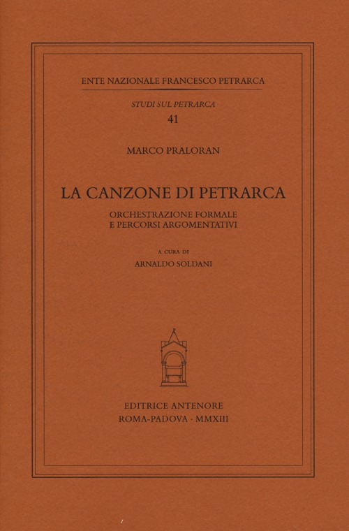 Il libro di Marco Praloran, linguista di fama europea, che ha contribuito a innovare gli studi sulla tradizione letteraria tra Medioevo e Rinascimento, propone un tentativo di ricerca a largo raggio sulla forma-canzone in Petrarca, intendendola non solo nelle sue strutture metriche ma soprattutto come modello complessivo di organizzazione del discorso e della significazione. Affiancando capitoli di taglio più teorico e metodologico ad altri che offrono delle serrate letture di testi singoli o di gruppi di testi, l'indagine fonde insieme più livelli di analisi: prosodia e rima, sintassi, processi argomentativi, sviluppi tematici. Ne riesce un'immagine assolutamente innovativa della canzone quale forma estrema dello sperimentalismo di Petrarca, luogo in cui la sublime e splendente complessità formale allude alla difficoltà di rappresentazione del mondo interiore, dominato dalle dinamiche del desiderio e sottoposto alla pressione della temporalità.