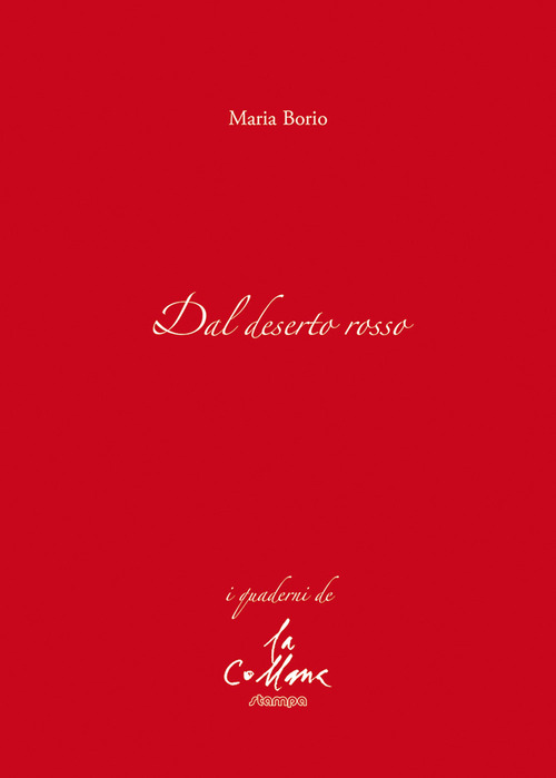Partendo dal titolo di un memorabile film di Michelangelo Antonioni del '64, appunto "Deserto rosso", dove è al centro una figura femminile inquieta e tormentata, Maria Borio compone un testo in due parti di intensa coerenza interna. La protagonista, rivolgendosi a un interlocutore reale o immaginario, scrive a partire a sua volta da una situazione di profondo disagio e insieme di sensibile apertura viva al reale che la circonda, in cui è anzi immersa. Una realtà anche naturale, talvolta vissuta come un sogno o un'allucinazione carica di tracce e presenze varie, in cerca sempre della parola autentica, «in questa cosa laica che è il mondo». La compattezza materica del suo tessuto espressivo si offre con singolare densità, tutta minuziosamente da esplorare, in una straordinaria serie in felice accumulo di sensazioni e circostanze. Ma poi il "rosso deserto" di Maria Borio si sviluppa articolandosi in movimenti strofici, conservando la densa energia nei rivoli molteplici dell'osservazione di sé e del mondo e nella riflessione sull'identità e il senso del nostro esserci. Un capitolo molto significativo di una delle nostre giovani voci di più solida personalità.