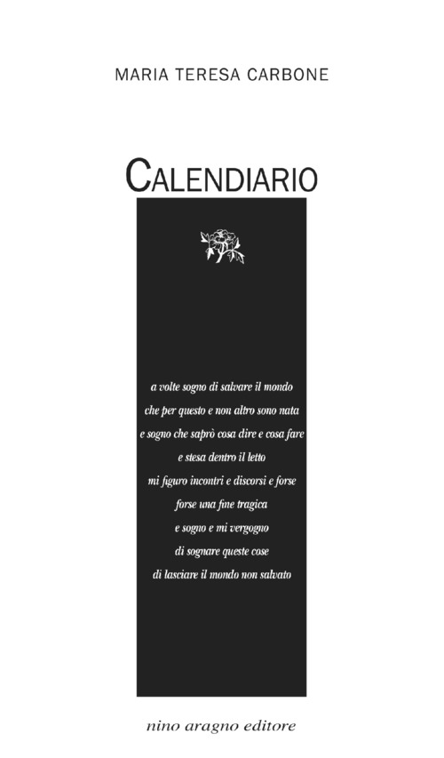 "Calendiario" (2004-2020), s'intitola questo primo libro di poesia di Maria Teresa Carbone, scrittura in versi che dopo una riflessione di più di quindici anni si offre alla pubblica lettura. Parola privata detta in pubblico, come Giulio Mozzi chiama quell'indagine etica ed esistenziale che lo scrivere, nell'essere per il mondo, sempre è. E anche, anche s'intitola questo libro Cinque quarti. Esercizi di cosmogonia quotidiana: dicendo di un ritmo che sopravanza, una misura d'eccesso, qualcosa che sfugge e che la parola poetica cerca di fermare con i propri mezzi, tutto ciò che nello scritto tende al suono e al corpo e così alla memoria, e attraverso di questa cuore, by heart, par coeur. Continuando così la poesia, come il noto aforisma dice di guerra e politica, la vita con altri mezzi. Un rifare il mondo che è fatica quotidiana, a torto considerata solo femminile, e allo stesso tempo felicità quotidiana come può esserlo il moto degli astri, il loro percorrere l'ellittica, il nostro uscire ogni notte, non necessariamente con angoscia, a rimirarle, quelle luci lontane, sidera, de-siderate, con-siderate. Il qualcosa, l'eccesso, il residuo, bersaglio che scarta, desiderio che forse è ricordo e che ci è ricorso, affiora nel contraltare di queste parole, immagini che fanno eco, nel diario - di nuovo - di una città quietamente osservata nella sua metafisica, che Maria Teresa Carbone tiene su Instagram, mezzo che ha fatto oggetto di teorica riflessione. Mezzo anche nel senso di ciò che si frappone e invisibilmente tiene insieme, il mezzo puro insino al primo giro di una città appena dilavata nel suo colore purgatoriale, di luogo proprio di una poesia che alla poesia e alla vita sembra voler concedere sempre ancora una seconda? una nuova possibilità. (Laura Pugno)