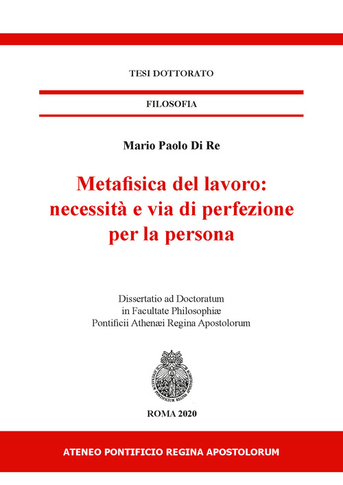 Il libro "Metafisica del lavoro" affronta un tema complesso come quello del lavoro secondo una prospettiva ed un'impostazione inedite, quelle della metafisica e dell'ontologia dell'esse intensivo secondo la filosofia di S. Tommaso d'Aquino. L'analisi sistematica del rapporto tra lavoro e ontologia getta luce non solo sul rapporto di continuità tra lavoro nel mondo naturale e lavoro umano, ma anche sull'ontologia personale. Il testo propone un ritorno all'essere nel lavoro e consente di guardare allo sviluppo umano e del mondo con occhi diversi, promuovendo la produttività e l'economia nel pieno rispetto della dignità di ogni ente. Infine, attraverso un'applicazione pratica, il testo indica un percorso che può condurre qualsiasi persona, qualunque sia la sua occupazione, verso le direttrici del bene, del vero e del bello, seguendo il processo naturale e spontaneo del proprio essere, fino a scoprirne la radice profonda e il suo fondamento, l'Esse Ipse Subsistens.