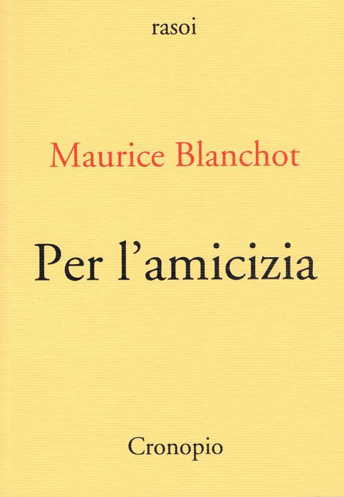 Nel folgorante "Pour l'amitié", qui presentato per la prima volta al lettore italiano, Maurice Blanchot rievoca l'amicizia con Dionys Mascolo ai tempi dell'occupazione tedesca della Francia e si interroga sul rapporto tra amicizia ed esigenza politica: la resistenza contro i tedeschi, la difesa del movimento algerino d'indipendenza, l'impegno nella rivoluzione del Maggio '68. Ma se tra compagni ci si dà del tu, Blanchot e i suoi amici anche nel vivo dell'impegno politico continuano a darsi del lei, perché l'amico è l'Altro «che non mi lascia mai tranquillo», che mi fa godere «della sua Altezza, di ciò che lo rende sempre più vicino al Bene di quanto lo sia 'io'».