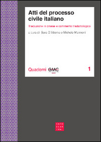 Il volume, che inaugura la collana dei Quaderni del Master GMC, risponde alla necessità di disporre di uno standard traduttologico uniforme italiano-cinese degli atti più importanti e ricorrenti del processo civile italiano. Non di rado, infatti, le traduzioni in cinese di tali documenti, a maggior ragione se ad opera di traduttori non specializzati, si caratterizzano per soluzioni approssimative e semplicistiche, quando non incoerenti ed errate, imputabili anche alla non piena comprensione degli atti da tradurre e della loro funzione legale. Nel volume, gli atti processuali italiani vengono dapprima introdotti e illustrati in riferimento alla prassi d'uso, e successivamente riportati in modelli standard con la loro versione in cinese. Gli atti sono affiancati da concise spiegazioni utili per una comprensione del testo anche ai non addetti e sono seguiti da una succinta analisi terminologica e traduttologica che permette al lettore di comprendere le scelte operate in fase di traduzione.