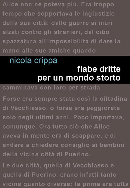 Vecchiasso e Puerino sono due città molto diverse. Nella prima sono tutti adulti, nella seconda tutti bambini. Nella prima ci sono solo problemi, nella seconda solo sorrisi. Alice, adulta di Vecchiasso, si incammina alla volta di Puerino per chiedere consigli di vita: "Come posso essere più felice?" I bambini sapranno spiegare agli adulti i perché della loro crisi? Potranno le fiabe creare un momento di riflessione, o il mondo sarà destinato a corrompersi sempre di più? Riusciranno i più piccoli a fare tornare a sognare i più grandi? Età di lettura: da 7 anni.