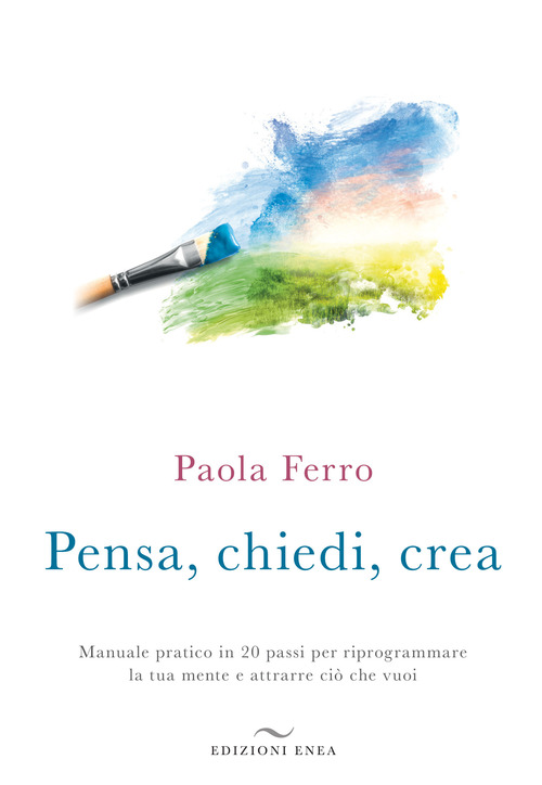 "Pensa, chiedi, crea" è un manuale di crescita personale agile e pratico, articolato in 20 passi con 35 esercizi (riflessioni, meditazioni, integrazioni emisferiche, tapping energetico). Attraverso le tecniche proposte potrai dare il via a un importante lavoro su di te, liberarti da blocchi e paure, riprogrammare la mente per raggiungere i tuoi obiettivi e creare la vita che desideri. Il percorso pratico proposto in questo libro ti permetterà di: fare il punto della situazione; portare alla luce aspetti di te che ignori; valorizzare i tuoi talenti; riscoprire i tuoi valori principali e i tuoi desideri; guarire il tuo bambino interiore; superare le tue paure; cambiare le tue credenze/convinzioni negative e boicottanti; creare energeticamente i tuoi obiettivi; sviluppare nuove capacità attrattive di abbondanza, successo e libertà.
