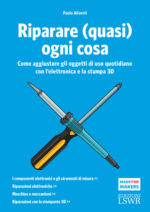 Gli oggetti che ci circondano sono progettati per rompersi allo scadere della garanzia. Il mestiere del riparatore è ormai sparito e più nessuno aggiusta perché non è conveniente. Ma è davvero così? Non possiamo fare altro che portare in discarica tutto quello che si rompe? Oppure esistono alternative sostenibili e più interessanti? Questo libro nasce per trasmettere a tutti la passione del riparare, un mestiere non certo semplice, che ricorda spesso il lavoro di un investigatore privato. È vero che gli oggetti si rompono più facilmente, ma le nuove tecnologie elettroniche e di prototipazione rapida, unite a un approccio razionale, possono aiutare a riparare quasi ogni cosa. Il libro presenta varie tecniche di riparazione basate su elettronica e stampa 3D, con numerosi esempi pratici, disegni e foto per costruire ricambi su misura e ridare vita ai tuoi oggetti.