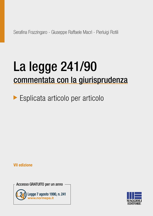 Questa nuova edizione è stata elaborata al fine di dare evidenza degli effetti giurisprudenziali maturati sull'assetto complessivo della legge n. 241/1990 a distanza di due anni dall'entrata in vigore del decreto legge 31 maggio 2021, n. 77 (c.d. Decreto Semplificazioni-bis), convertito, con modificazioni, dalla legge 29 luglio 2021, n. 108, recante "Governance del Piano nazionale di ripresa e resilienza e prime misure di rafforzamento delle strutture amministrative e di accelerazione e snellimento delle procedure". Come noto, trattandosi di disposizioni volte a snellire i tempi degli interventi previsti dal PNRR, il legislatore ha scelto di non intervenire, se non in alcuni casi, sul testo della legge n. 241/1990, ma piuttosto di prevedere espresse deroghe proprio alla disciplina della suddetta legge nell'ambito dei predetti procedimenti concernenti gli interventi del PNRR, in particolar modo relativamente alle conferenze di servizi e alle diverse procedure autorizzatorie. Gli interventi di modifica diretti sulla legge n. 241/1990 sono contenuti negli articoli 61, 62 e 63 del suddetto decreto, che compongono ed esauriscono il Titolo VI (Modifiche alla legge 7 agosto 1990, n. 241), della Parte II, del D.L. n. 77/2021. Detti articoli intervengono su altrettanti istituti della legge n. 241/1990, nell'ordine: sull'esercizio del potere sostitutivo (art. 2, L. n. 241/1990), sul silenzio assenso (art. 20, L. n. 241/1990) e sull'annullamento d'ufficio (art. 21-nonies, L. n. 241/1990). Il fatto che il legislatore abbia voluto porre su di essi la propria attenzione testimonia, come si evince anche dagli sviluppi giurisprudenziali, non solo l'importanza che gli stessi rivestono all'interno del nostro ordinamento giuridico ma, più in generale, la rilevanza e la centralità del delicato rapporto tra pubblica amministrazione e amministrati. Il volume mantiene la struttura della suddivisione articolo per articolo, con la giurisprudenza ordinata per argomento all'interno dei singoli articoli, confermando così le sue caratteristiche di facile e immediata consultazione. La raccolta giurisprudenziale è aggiornata al mese di giugno 2023, al fine di fornire all'operatore e ai singoli cittadini uno strumento che sia il più completo possibile e che possa essere di ausilio nei (non sempre agevoli) rapporti con la pubblica amministrazione.