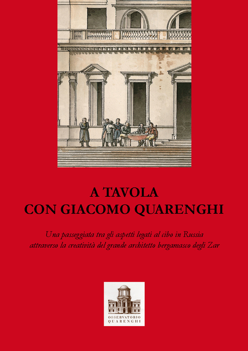 "L'Osservatorio Quarenghi si adopera da vent'anni per approfondire e diffondere la conoscenza della vita e delle opere del più grande architetto bergamasco, Giacomo Quarenghi, la cui straordinaria attività in Russia tra i secoli XVIII e XIX ha segnato in modo indelebile il volto di San Pietroburgo. L'occasione dell'Expo di Milano 2015 ci ha stimolati a tentare un approccio inconsueto alla creatività di questo grande artista, anche per ampliare ulteriormente presso un più vasto pubblico (anche grazie all'edizione in tre lingue) la conoscenza della sua arte e del contesto culturale nel quale si trovò a operare. La straordinaria Raccolta di suoi disegni (la più grande al mondo) conservata nella Biblioteca Civica di Bergamo ha ottimamente consentito di addentrarsi in quella piega della vita sociale e delle radici culturali che si rispecchia nel rapporto con il cibo e l'alimentazione nella Russia di epoca neoclassica." (Piervaleriano Angelini)
