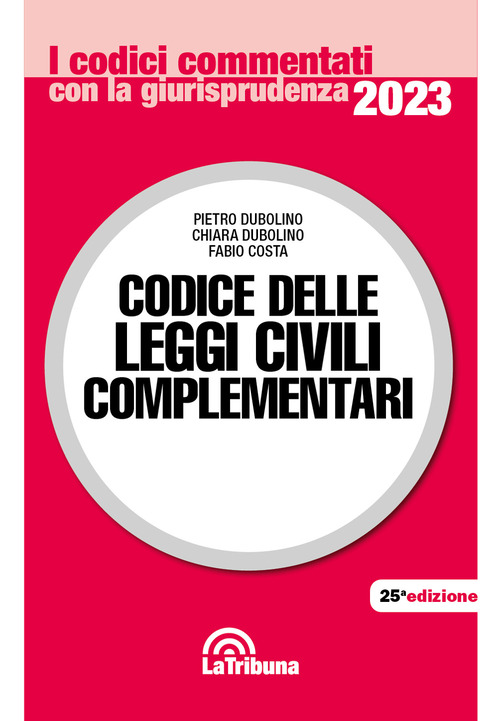 Quest'opera fornisce ai lettori il testo aggiornato delle principali leggi complementari al Codice civile. La selezione delle leggi complementari comprende materie fra le quali segnaliamo: Adozione; appalti pubblici; Assicurazioni; Cittadinanza; Commercio elettronico; Contratti agrari; Crisi di impresa; Divorzio; Intermediazione finanziaria; Lavoro; Locazioni; Matrimonio; Mediazione; Sovraindebitamento; Titoli di credito; Tutela dei consumatori e class action.