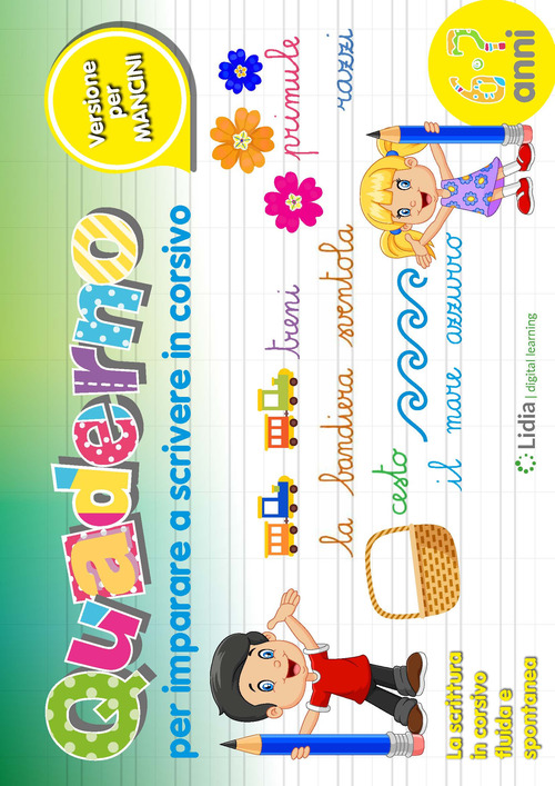 Quaderno per imparare a scrivere in corsivo. Versione per mancini