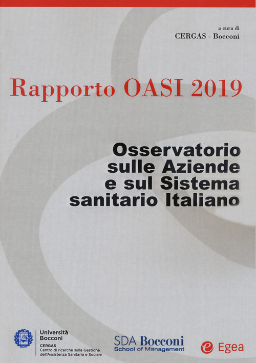 Il rinnovamento dei sistemi sanitari è da tempo al centro del dibattito politico e scientifico nazionale e internazionale. Con l'istituzione di OASI (Osservatorio sulle Aziende e sul Sistema sanitario Italiano), il CERGAS ha voluto confermarsi quale punto di riferimento per l'analisi dei cambiamenti in corso nel sistema sanitario italiano, adottando un approccio economico-aziendale. Ha inoltre creato un tavolo al quale mondo accademico e operatori del SSN possono interagire ed essere nel contempo promotori e fruitori di nuova conoscenza. A partire dal 2000, l'attività di ricerca di OASI è stata sistematicamente raccolta in una serie di Rapporti Annuali. Il Rapporto 2019: presenta l'assetto complessivo del SSN (profili istituzionali, struttura, attività, spesa, esiti) e del settore sanitario italiano, inquadrandolo anche in ottica comparativa internazionale. Sono inclusi approfondimenti sui consumi privati di salute, sugli erogatori privati accreditati e sul sistema sociosanitario e sociale; approfondisce questioni di policy rilevanti per il sistema sanitario e le sue aziende, quali le lezioni apprese dalla stagione dei Piani di Rientro; la centralizzazione degli acquisti e i relativi impatti multidimensionali; le dinamiche economiche del settore dei dispositivi medici; il ruolo della Medicina Generale all'interno della filiera dei servizi; a livello aziendale, si focalizza sul ruolo delle tecnologie nell'innovare i servizi; sulle scelte strategiche riguardanti specializzazione e capillarità delle reti ospedaliere; sul ruolo e sulle attività svolte dal Direttore Generale; sugli strumenti di empowerment e responsabilizzazione del middle management; sulle dinamiche economiche che hanno contraddistinto le Aziende Ospedaliere pubbliche; su ostacoli e prospettive del processo di femminilizzazione dei ruoli apicali nel SSN.