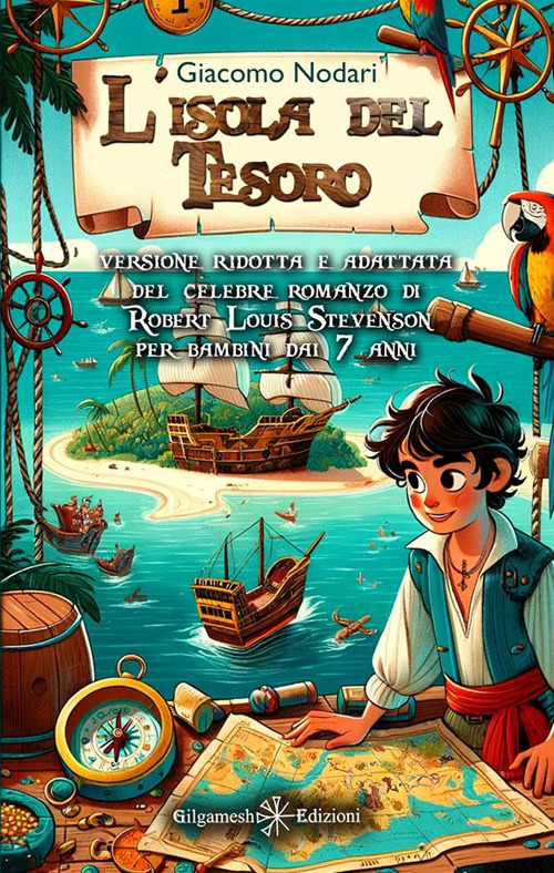 Scopri l'avventura che aspetta ogni giovane cuore! In questo emozionante adattamento del classico L'Isola del Tesoro di Robert Louis Stevenson, i giovani lettori dai 7 ai 10 anni sono invitati a salpare in un viaggio indimenticabile insieme al coraggioso Jim. Con il magico stile narrativo di Giacomo Nodari, questa storia è un tesoro che aspetta di essere scoperto! Incontra Jim, un ragazzo curioso e avventuroso, che scopre una mappa del tesoro nascosta in una vecchia soffitta. La sua scoperta lo porta a una serie di avventure eccitanti, dove ogni pagina è un passo in più verso l'ignoto. Naviga con l'equipaggio dell'Hispaniola, una ciurma di personaggi colorati e affascinanti. Impara insieme a loro l'arte della navigazione, i segreti del mare e il valore della lealtà e dell'amicizia. Esplora l'Isola Misteriosa, un luogo di meraviglie naturali, enigmi antichi e pericoli nascosti. Ogni capitolo è un indizio, ogni scoperta un passo avanti nel mistero del tesoro perduto. Trova il tesoro con Jim, ma scopri che la vera ricchezza non è fatta di oro e gioielli. In questo viaggio, il coraggio, l'amicizia e l'immaginazione sono i veri tesori [...]. Versione ridotta e adattata del celebre romanzo di Robert Louis Stevenson per bambini dai 7 anni. Età di lettura: da 7 anni.