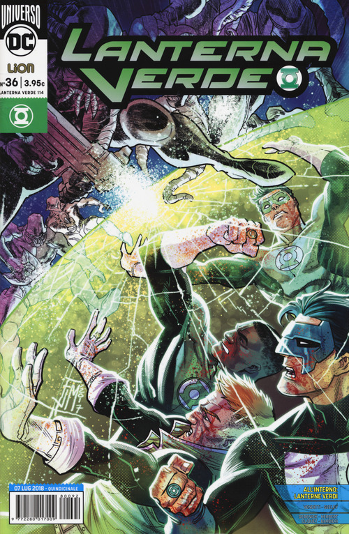 Apriamo questo numero di "Lanterna Verde" con "Hal Jordan and The Green Lantern Corps" e con il terzo e penultimo capitolo dell'arco narrativo intitolato "Il Crepuscolo dei Guardiani". Come visto negli episodi precedenti, Sayd e Ganthet sono stati attaccati su Oa e rapiti da alcuni misteriosi nemici che, grazie alla preziosa testimonianza della recluta Somar-Le, sono stati identificati come i temibili Controllori. Il leader del Corpo John Stewart e le altre tre Lanterne terrestri avevano intanto portato avanti una indagine tenendo all'oscuro il resto del Corpo, sperando così di non allertare i nemici e sfruttare il fattore sorpresa per la missione di salvataggio. John, Guy, Hal e Kyle avevano deciso quindi di avventurarsi nella base dei Controllori da soli, ma con gli anelli carichi, per soccorrere i Guardiani. Intanto gli stessi Controllori avevano svelato il loro piano: utilizzare il materiale genetico che li accomuna con i Guardiani per creare nuovi membri della loro razza. Doppio appuntamento con Green Lanterns. Si conclude l'arco narrativo "Oh, Bolphunga, dove sei?" con un ultimo capitolo che vedrà Jessica Cruz e Simon Baz affrontare Calamity Jain, la misteriosa avvocatessa di Bolphunga. Chiude l'albo il primo capitolo del nuovo arco narrativo in tre parti intitolato "Un mondo per noi" in cui Simon e Jessica faranno ritorno su Ungara dove la convivenza fra popolazione locale e i profughi provenienti da Mol si sta rivelando complicata a causa di alcune spinte xenofobe interne. Contiene "Hal Jordan and the Green Lantern Corps" #34-35, "Green Lanterns" #36.