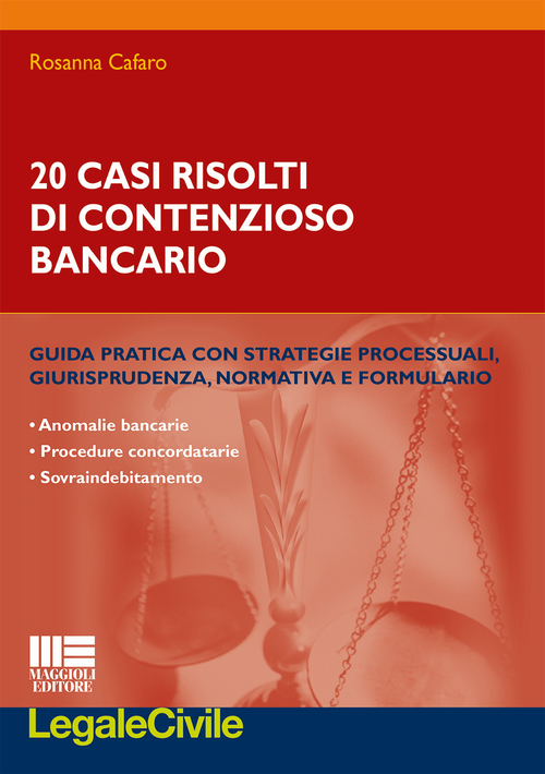 Attraverso la presentazione di 20 casi concreti risolti, il volume analizza gli istituti coinvolti e descrive le strategie processuali nell'ambito del contenzioso bancario, supportando ogni passo col dovuto corredo giurisprudenziale. Vengono in particolare affrontati casi di anomalie bancarie, procedure concordatarie e sovraindebitamento. Ogni caso riportato diventa così l'occasione per guidare il lettore alla soluzione di questioni particolarmente controverse e offrire al professionista un percorso per la risoluzione di problematiche simili. L'operatore potrà così fruire: dell'analisi degli istituti e delle procedure in materia di contenzioso bancario seguendo la ricostruzione pratica dei casi risolti; di strumenti pratici e operativi immediatamente rispendibili nella propria attività quotidiana, quali la ricca raccolta normativa e giurisprudenziale e il formulario. L'intento dell'opera è chiaro: fornire al lettore gli strumenti necessari per affrontare casi concreti, attraverso l'analisi delle strategie e delle fasi processuali dei casi risolti. In quest'ottica, la normativa, la giurisprudenza e il formulario riportati sono strumenti che rendono l'opera un sicuro supporto operativo per la pratica quotidiana.