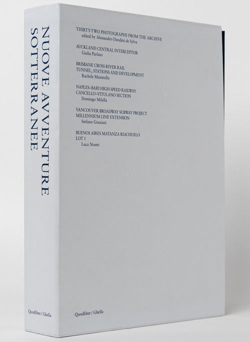 Nuove avventure sotterranee raccoglie i progetti fotografici di Stefano Graziani, Rachele Maistrello, Domingo Milella, Luca Nostri e Giulia Parlato, incaricati di documentare liberamente la nascita di grandi opere infrastrutturali in quattro continenti. Commissionate da Ghella, la più antica azienda italiana di grandi infrastrutture nata nel 1894 e specializzata in scavi in sotterraneo, le cinque campagne fotografiche sono state realizzate tra 2022 e 2023 in cantieri tra Italia, Canada, Argentina, Australia e Nuova Zelanda. L'opera, a cura di Alessandro Dandini de Sylva, è costituita da un cofanetto di sei volumi cartonati bilingue (italiano e inglese). I primi cinque documentano altrettante indagini fotografiche, il sesto libro raccoglie una selezione di fotografie dall'archivio storico di Ghella. In ogni volume, vedute dei cantieri e delle città si alternano a reperti fossili e componenti di macchine escavatrici, foreste tropicali e formazioni rocciose, operai al lavoro e animali notturni.