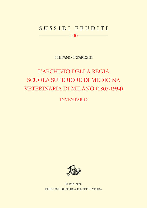 Dopo una lunga e complessa attività di riordinamento condotta dall'autore di questo Inventario, è stato di recente reso disponibile agli studiosi l'Archivio della Regia Scuola superiore di medicina veterinaria di Milano, una delle più antiche scuole di veterinaria in Europa (la sua istituzione risale al 1791), che operò fino al 1932, quando fu aggregata all'Università di Milano trasformandosi nell'attuale Facoltà di medicina veterinaria. Questo Inventario rappresenta l'esito del lavoro di riordinamento e fornisce una descrizione accurata, completa e organica dell'archivio, formato da 247 unità tra cartelle e registri e fisicamente conservato in due sedi distinte (nella nuova sede di Lodi della Facoltà e presso il Centro Apice dell'Università). L'interesse storico di queste carte, che iniziano con gli anni napoleonici, è notevole, per almeno due ragioni. Da un lato, non vi sono in Italia altri casi di archivi di vecchie scuole di medicina veterinaria conservati con una continuità nel tempo e una consistenza paragonabile a questo caso; dall'altro, i documenti dell'Archivio della Scuola di Milano sono in grado di illuminare i molteplici risvolti dell'attività di questa istituzione, attraverso diversi regimi politici: come istituto di formazione delle leve della giovane professione di veterinario, come stabilimento strettamente collegato alle esigenze del territorio in cui operava (attraverso, per esempio, le sue cliniche per la cura degli animali), e infine - soprattutto a partire dagli anni Ottanta dell'Ottecento - come centro di ricerca e di divulgazione scientifica.