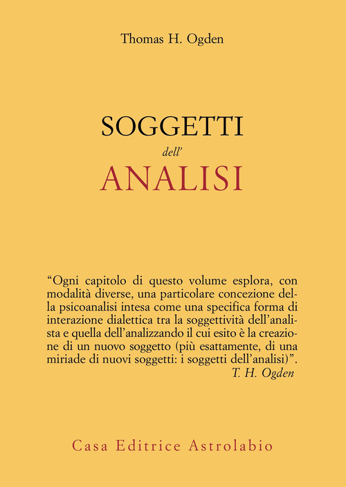 "È troppo tardi per tornare indietro. Avendo letto le prime parole di questo libro sei già entrato nella inquietante esperienza di scoprire che stai diventando un soggetto che non hai mai incontrato prima, ma che nonostante tutto riconosci. [...] Un terzo soggetto viene creato nell'esperienza della lettura e questo non è riducibile né allo scrittore né al lettore. La creazione di un terzo soggetto è l'essenza dell'esperienza della lettura e, come verrà poi analizzato in questo volume, è anche il cuore dell'esperienza psicoanalitica". Attraverso il brillante parallelismo tra l'esperienza della lettura e l'esperienza psicoanalitica, Ogden propone immediatamente al lettore una posizione di partecipazione attiva in quanto soggetto della relazione con l'autore. I 'soggetti dell'analisi' sono tra di loro in una relazione dialettica: attraverso il processo psicoanalitico, analista e analizzando si creano a vicenda quali soggetti e contemporaneamente generano un terzo soggetto: il 'terzo analitico'. "Sebbene creato congiuntamente da analista e analizzando", il terzo analitico "non è esperito in maniera uguale da analista e analizzando, poiché ciascuno rimane un soggetto separato in tensione dialettica con l'altro", proprio come "il terzo che si crea nell'esperienza del leggere non riflette allo stesso modo il lettore e lo scrittore", torna ancora a suggerire Ogden. L'autore dialoga con le illustri madri e i grandi padri della psicoanalisi, a sua volta dando vita, per così dire, a un 'terzo pensiero' che nasce dall'interazione feconda con loro. Partendo dalle basi del concetto freudiano di soggetto, analizza nei primi capitoli il modo in cui la concezione intersoggettiva del soggetto viene sviluppata nei lavori di Klein e di Winnicott, per poi passare all'illustrazione clinica del concetto di 'terzo analitico'. Nella seconda parte del libro, Ogden rivisita il concetto kleiniano di 'identificazione proiettiva' come una forma specifica di 'terzietà analitica', introduce il concetto di 'azione interpretativa', analizza la matrice del transfert-controtransfert e si occupa del fenomeno dell'autismo psicologico. Conclude il testo un dialogo con Stephen Mitchell su diverse questioni di teoria e pratica psicoanalitica.