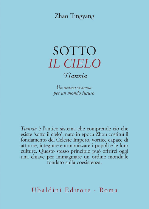 Il concetto di tianxia, elaborato per la prima volta più di tremila anni fa durante la dinastia Zhou, considera il mondo nella sua interezza come soggetto politico. Analizzare i problemi prendendo come unità di riflessione tutto ciò che sta 'sotto il cielo' (tianxia) permette di progettare un ordine politico in grado di dare conto in modo sorprendentemente efficace di una realtà globalizzata. Non si tratta di una fantasia idealistica, non promette la felicità universale, è piuttosto un sistema che mira a garantire pace e sicurezza, e il punto chiave di questo progetto consiste nel rendere infruttuose le strategie concorrenziali o di conflitto, o più precisamente nel rendere inutile qualunque azione volta a distruggere l'altro, così da garantire che la coesistenza diventi condizione di esistenza. Gli imperi che hanno dominato in lungo e in largo in passato, non diversamente da quelli che dominano oggi, si basano su un concetto di stato-nazione e su interessi nazionali; partire dal mondo per riflettere sul mondo significa immaginare una grammatica del pensiero completamente diversa: il concetto di tianxia comporta infatti l'inclusione di tutto quel che prima era esterno (internalizzazione), e anche sul piano logico consente di eliminare concetti come 'nemico mortale', 'irriducibile', 'assolutamente altro da sé', 'spiritualmente alieno', e cancella del tutto la nozione di 'eresia'. Sono queste le premesse da cui parte Zhao Tingyang per esporre la sua teoria di filosofia politica; attraverso continui rimandi al pensiero cinese classico e contemporaneo e alla filosofia occidentale, che vanno da Xunzi a Hobbes, dal Daodejing di Laozi a Per la pace perpetua di Kant, da Li Zehou a John Rawls, il filosofo delinea una visione radicata in un passato antico e al contempo proiettata verso il futuro, tracciando una strada che soddisfi tanto i criteri di compatibilità di Confucio quanto quelli di compossibilità di Leibniz e porti a un sistema mondiale foriero di vantaggi condivisi, distaccato dalla logica della ricerca del massimo interesse egoistico, nel rispetto del limite ontologico costituito dall'ordine naturale.