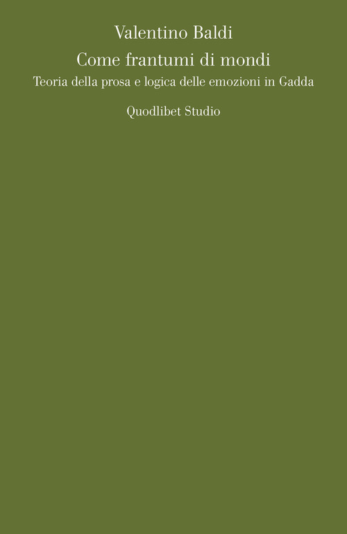 Carlo Emilio Gadda, uno dei più grandi narratori del Novecento, è ancora ai margini del canone scolastico per via della sua complessità: il lettore che si avvicini per la prima volta all'opera gaddiana rischia di essere scoraggiato dalla densa stratificazione di problemi linguistici, filologici e logici posti da una compagine testuale così intricata da poter apparire illeggibile. "Come frantumi di mondi" è un libro sulla costruzione narrativa di Gadda, che prova a trattare Gadda come una sineddoche per interrogarsi sulla dialettica fra logica del mondo e racconto letterario. Vi si affrontano questioni di teoria della letteratura e di logica dell'interiorità lungo due linee di indagine diverse: quella psicologico-psicoanalitica, condotta sulla scia di Freud e Matte Blanco; e quella filosofico-scientifica, esplorata nei suoi legami con il pensiero di Leibniz, Spinoza e Kant, ma anche di Einstein, Heisenberg e Pauli. L'impostazione teorica di Come frantumi di mondi rispecchia, così, la cultura gaddiana, articolandosi attorno a tre coppie antinomiche che ritornano in tutti i capitoli: matematica ed emozioni; logica e caos; convenzioni letterarie e vissuto.