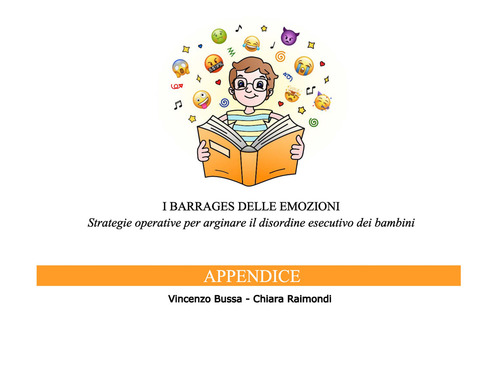«Quando si apre un cantiere bisogna accertarsi di aver pianificato con attenta cura ogni dettaglio. (...) La scelta del materiale da utilizzare consente la preparazione di un setting strutturato e ben definito. È il caso di questa "appendice", che si innesta come un valore aggiunto per approfondire, nel suo più ampio raggio di azione, il tema dell'educazione delle emozioni o, per meglio dire, dell'alfabetizzazione emotiva dei bambini. (...) Le risorse disponibili in queste pagine si incastrano come punti di forza dell'intera opera (...) e consentono di svolgere al meglio i "percorsi" degli "allenamenti cognitivi" proposti nella collana». (Dall'Introduzione)