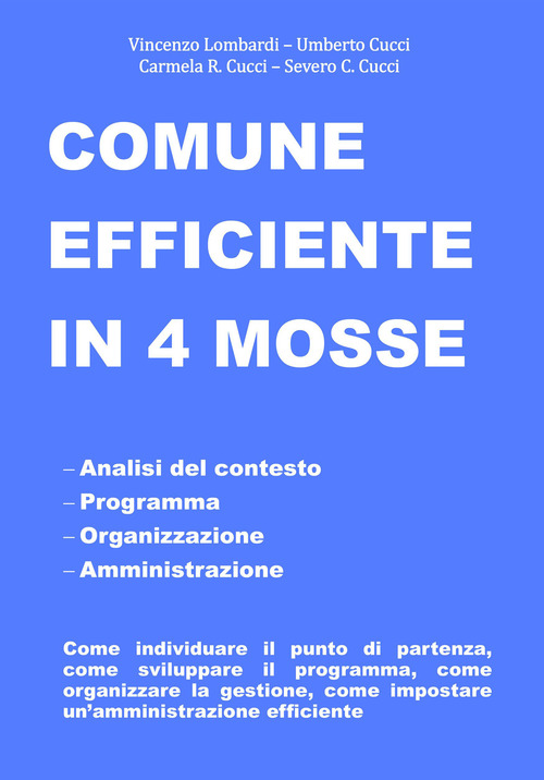 Comune efficiente in 4 mosse. Analisi del contesto, programmazione, organizzazione, amministrazione, come individuare il punto di partenza, come sviluppare il programma, come organizzare la gestione, come impostare un'amministrazione efficiente