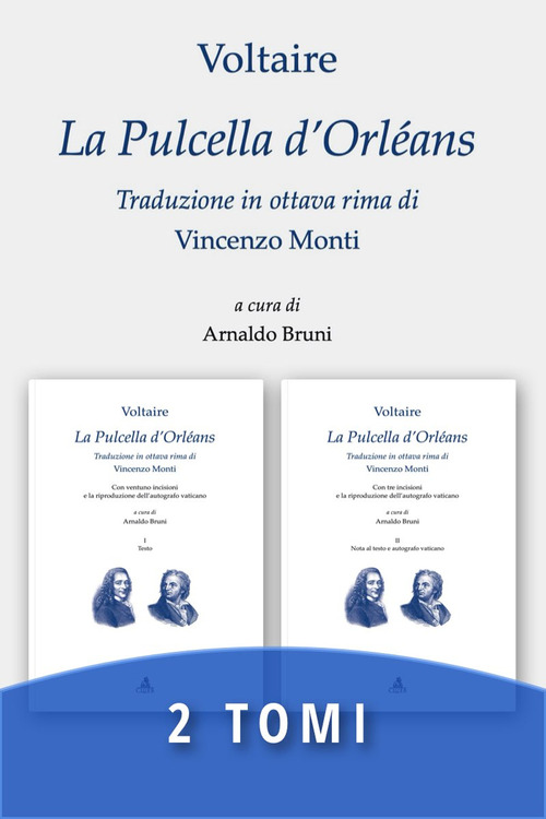 È possibile leggere finalmente La Pulcella d'Orléans di Voltaire tradotta da Vincenzo Monti nella forma più prossima all'originale, grazie alla scoperta di una sezione consistente dell'autografo vaticano (canti XII-XXI). la Pucelle, confinata nell''inferno' dei libri proibiti fin dall'esordio (1775), ha attraversato una vicenda romanzesca, deprecata dallo stesso autore che ne rivendicava la moralità anche quando correvano per Parigi seimila manoscritti clandestini, avidamente ricercati da lettori impenitenti. Non diversa sorte la stampa francese ha avuto in Italia, dove perfino scrittori timorati, da Beccaria a Manzoni, ricorrevano al vient-de-paraître per una incontenibile pulsione voyeuristica. lo scandalo si è perpetrato fino alla seconda metà dell'ottocento con la versione di Monti per via di sottrazioni mirate del manoscritto, confezionato da Andrea Maffei, dai palchetti della Biblioteca "Angelo Mai" di Bergamo. Il che comportò l'accusa, perfino di tribunale, con un processo a carico dell'editore livornese Francesco Vigo che aveva osato pubblicare l'inedito (1878, 1880), avvalendosi di una copia prezzolata.