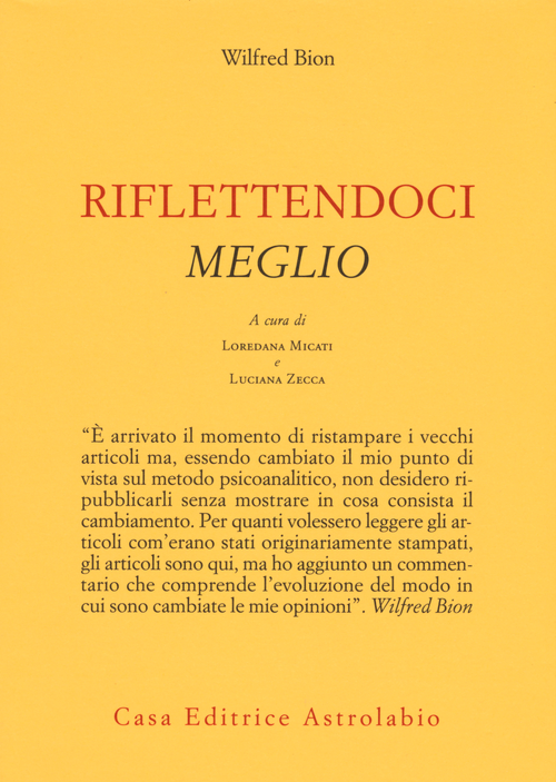 Nel 1967 Bion pubblica Second Thoughts, testo geniale ma anche ambiguo e complesso. Si tratta di una raccolta di articoli psicoanalitici, incentrati su casi clinici, già apparsi negli anni cinquanta: l'autore non vi apporta nessuna modifica, ma aggiunge, in fondo al volume, una lunga riflessione chiamata "Commentari", in cui esprime cambiamenti di grande interesse avvenuti nel suo pensiero. A cambiare non è tanto l'interpretazione dei casi clinici, quanto l'attitudine mentale che sottende l'interpretazione: Bion non considera più (diversamente da allora) i suoi resoconti come trascrizione fedele dei fatti accaduti, ma come trascrizione, espressa in parole, delle immagini sensoriali dell'analista in rapporto ai processi mentali del paziente. I resoconti clinici, dunque, dovrebbero essere riconsiderati come formulazioni verbali di immagini sensoriali costruite per comunicare in una data forma (sensibile) qualcosa che venne in origine probabilmente comunicato in un'altra. Ciò in virtù della sua convinzione che la memoria (su cui i resoconti clinici necessariamente si basano) nasce dall'esperienza sensoriale, mentre la psicoanalisi si occupa essenzialmente di esperienze non sensoriali. In ogni resoconto di seduta, quindi, del tutto indipendentemente dalla tempestività di trascrizione, la memoria dovrebbe secondo Bion essere considerata solo come comunicazione figurativa di un'esperienza emotiva.